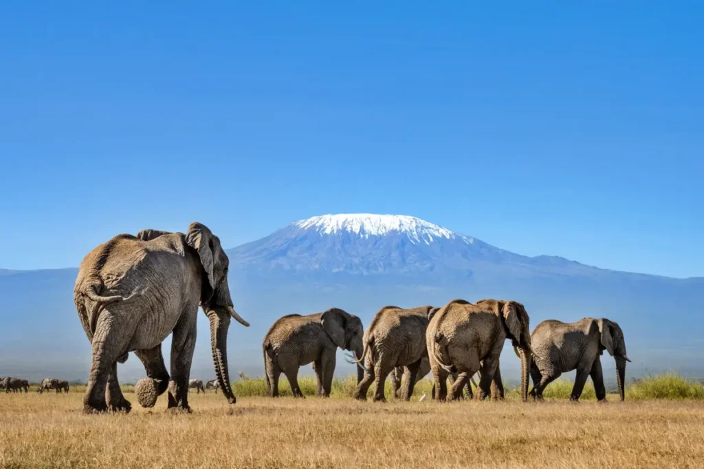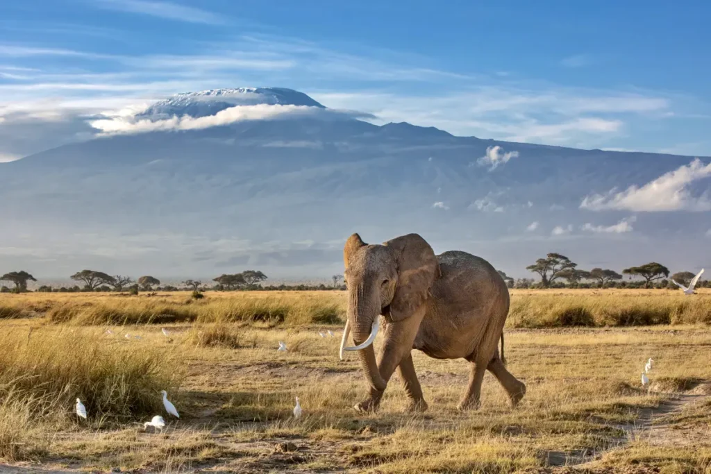 Amboseli National Park is one of Kenya’s most iconic safari destinations, renowned for its magnificent views of Mount Kilimanjaro, Africa’s highest peak. This park offers a unique backdrop for wildlife photography, with herds of elephants often seen roaming against the dramatic silhouette of the snow-capped mountain. Amboseli is a haven for wildlife enthusiasts, home to diverse species including lions, cheetahs, buffaloes, giraffes, zebras, and over 400 species of birds. Known as the “Land of Giants,” the park’s elephant population is particularly remarkable, with some of the largest and most majestic elephants in Africa. Amboseli also provides visitors with opportunities to learn about the culture of the Maasai people, whose villages surround the park. With its unforgettable scenery and rich wildlife, Amboseli National Park promises an immersive experience in Kenya’s natural beauty and cultural heritage.