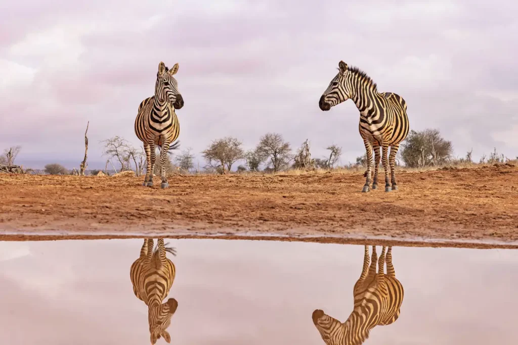 Tsavo East National Park, one of Kenya’s oldest and largest parks, is a vast wilderness renowned for its striking landscapes and diverse wildlife. Spanning over 13,000 square kilometers, the park offers sweeping views of open plains, iconic red-hued elephants, and stunning geological features. The red soil of Tsavo gives the elephants their distinctive reddish appearance as they dust bathe, making for remarkable and unique photo opportunities. The park is also home to the famous Big Five; lions, leopards, elephants, buffaloes, and rhinos alongside other wildlife like giraffes, zebras, and an array of antelopes. A highlight of Tsavo East is the Yatta Plateau, one of the world’s longest lava flows, offering visitors an impressive backdrop of geological wonder.